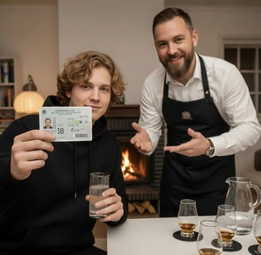 Der Ausschank von Branntwein (Whisky) an Personen unter 18 Jahren ist gesetzlich untersagt. Der Anbieter behält sich vor, vor Beginn eines Tastings oder während einer Cocktail-Party eine Altersprüfung mittels Lichtbildausweis durchzuführen. Kann ein entsprechender Nachweis nicht erbracht werden, ist eine Teilnahme am Tasting / Ausgabe von Cocktails ausgeschlossen.
