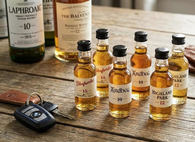 Sicherer Genuss: In letzteren Fällen bieten wir gerne an, die verbleibenden Whiskys als „Driver Drams“ abzufüllen, damit diese zu einem späteren Zeitpunkt in Ruhe und Sicherheit genossen werden können.